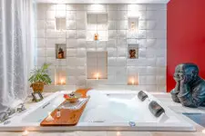 • Banheira de hidromassagem com cromoterapia com vista para o mar