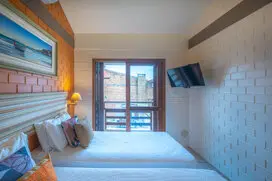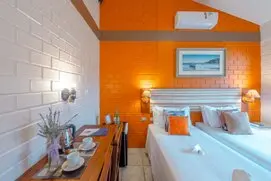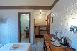 Em homenagem aos engenhos de farinha de mandioca que durante um século foram a principal atividade econômica de SC, está Suíte foi decorada com as cores predominantes dos antigos engenhos - madeira e barro e a cor clara da farinha nas paredes. Aconchegante com uma pequena sacada lateral.